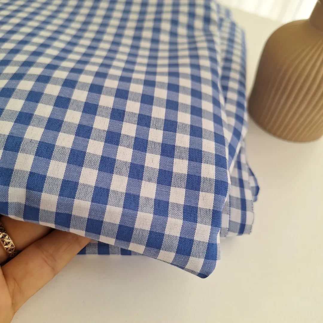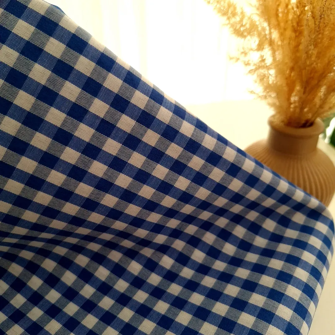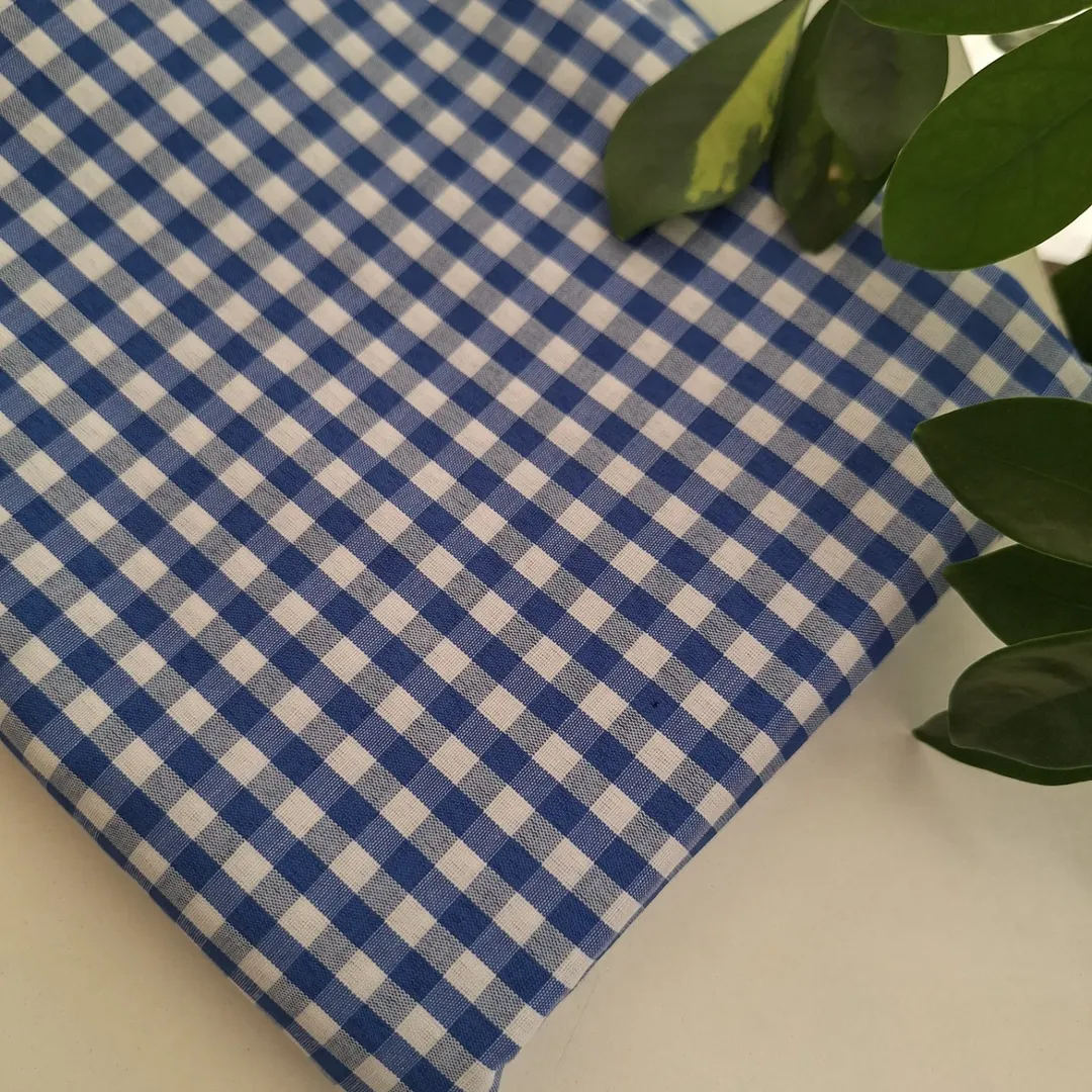 پارچه تترون چهارخونه آبی عرض ۱۵۰